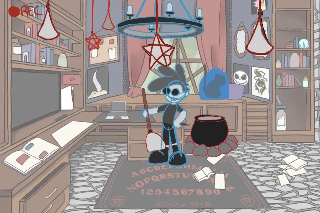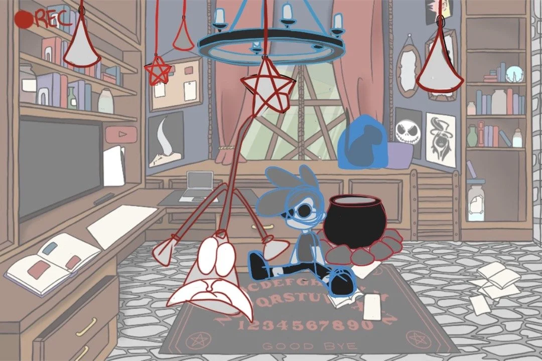 Model sheets, animatic frames and concept sketches for my animated short ‘Spellstream’